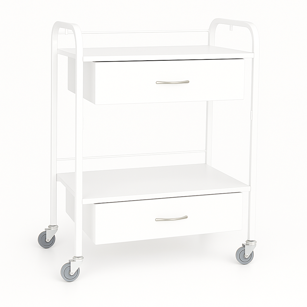 עגלת הטיפולים 2 מדפים ו-2 מגירות מעץ היא בחירה מושלמת למקצועניות בתחום הקוסמטיקה שמחפשות פתרון איכותי ואלגנטי לאחסון ציוד וחומרי עבודה. בעלת עיצוב יפהפה ופרקטיות מרבית, העגלה מאפשרת שמירה מסודרת ונגישה על כל הציוד והכלים הדרושים לעבודה מקצועית.