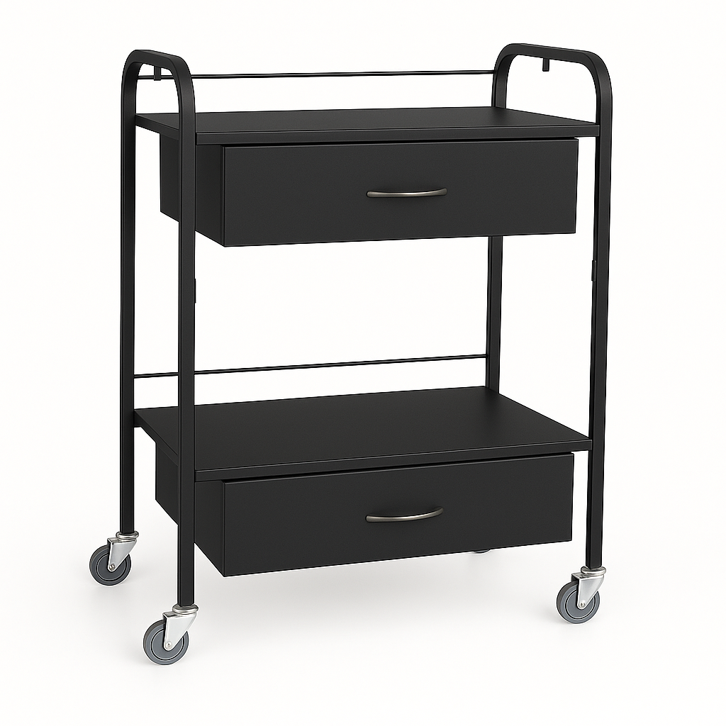 עגלת הטיפולים 2 מדפים ו-2 מגירות מעץ היא בחירה מושלמת למקצועניות בתחום הקוסמטיקה שמחפשות פתרון איכותי ואלגנטי לאחסון ציוד וחומרי עבודה. בעלת עיצוב יפהפה ופרקטיות מרבית, העגלה מאפשרת שמירה מסודרת ונגישה על כל הציוד והכלים הדרושים לעבודה מקצועית.