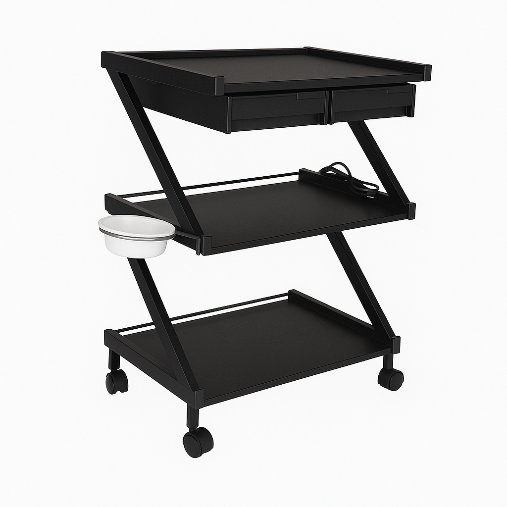עגלת הטיפולים Z עם 3 מדפים ו-2 מגירות פלסטיק היא פתרון יעיל ופרקטי למקצועניות בתחום הקוסמטיקה שמחפשות ארגון מרוכז ונוחות במהלך העבודה. בעזרת עגלת הטיפולים הזו, ניתן לשמור על סדר וארגון בכל רגע נתון ולשמור על ניקיון ויעילות במהלך העבודה.