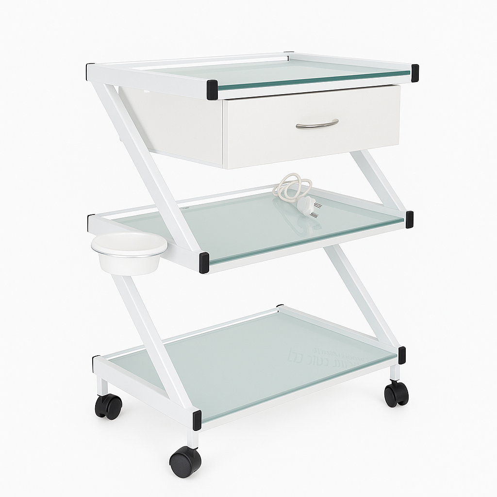 אורך: 40*60עגלת הטיפולים Z עם 3 מדפים ומגירה מעץ היא פתרון מושלם למקצועניות בתחום הקוסמטיקה שמחפשות ארגון מרוכז ונוחות במהלך העבודה. העגלה מספקת מקום לאחסון וארגון יעיל לכלים, ציוד וחומרי עבודה, ומאפשרת גישה קלה ונוחה לכל החומרים הדרושים במהלך העבודה.
