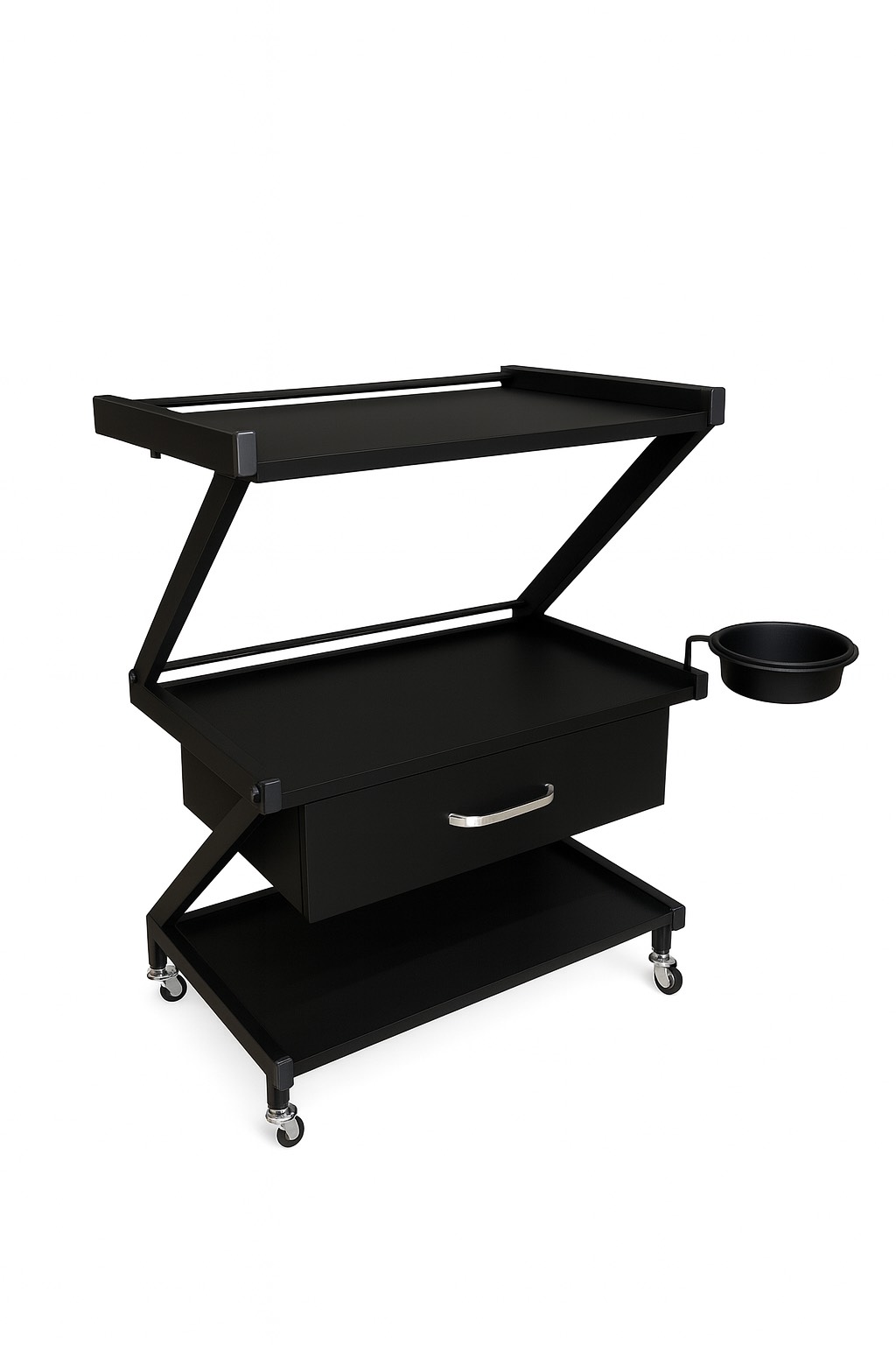 עגלה יוקרתית בעיצוב מודרני ומרשים, המתאימה לקוסמטיקאיות, קליניקות ומכוני יופי המעוניינים במראה אלגנטי ומסודר.